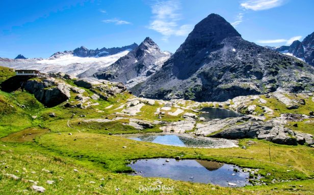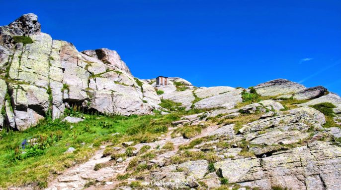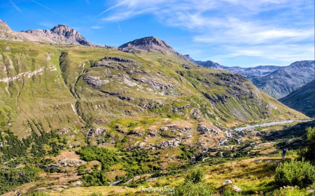 Sans remonter vers le refuge, une sente permet de contourner le Lac des Pareis puis de gravir les prairies qui ramènent au Col des Evettes.