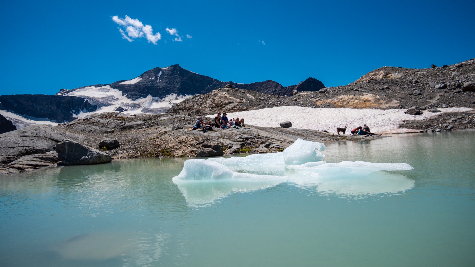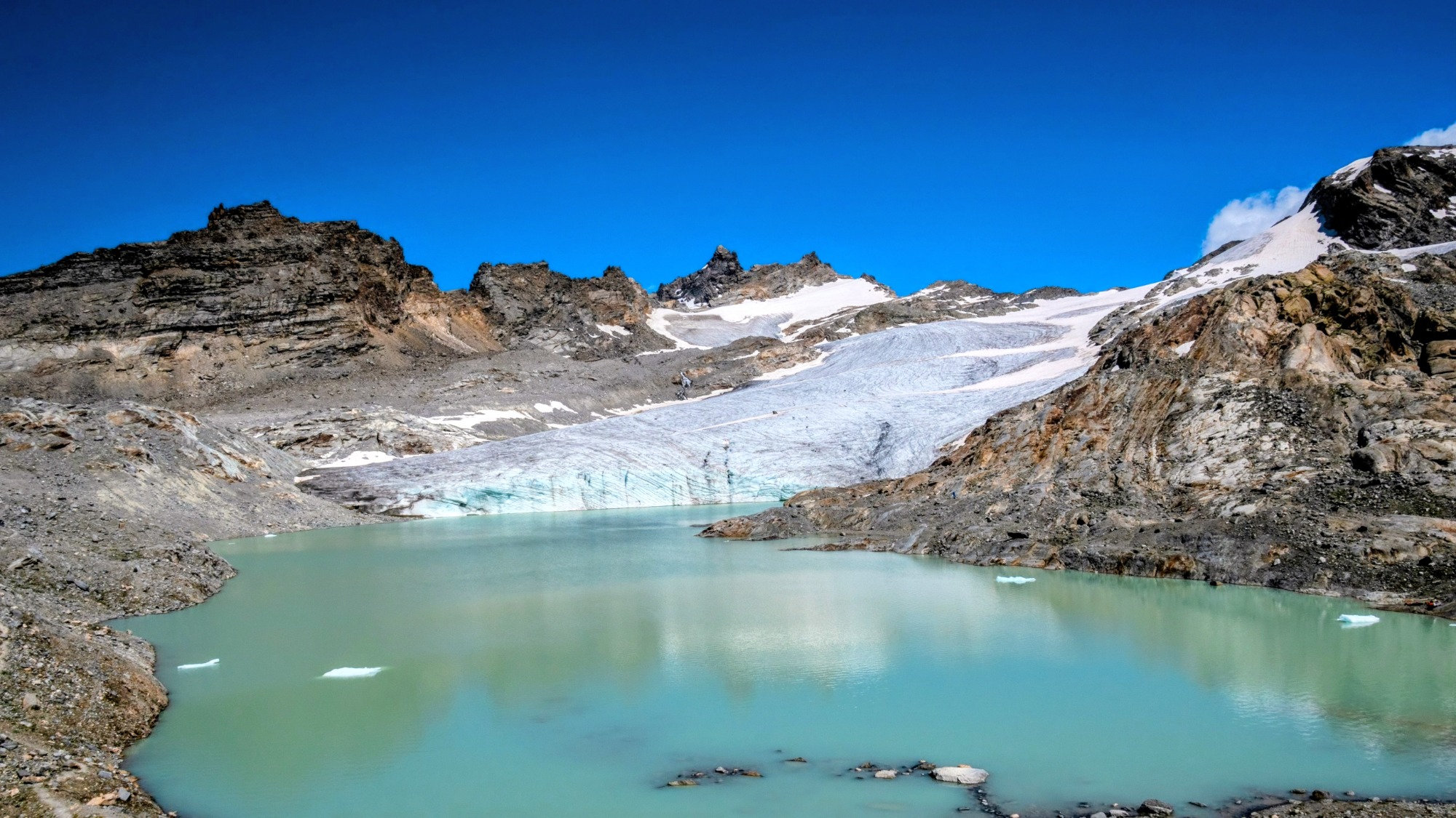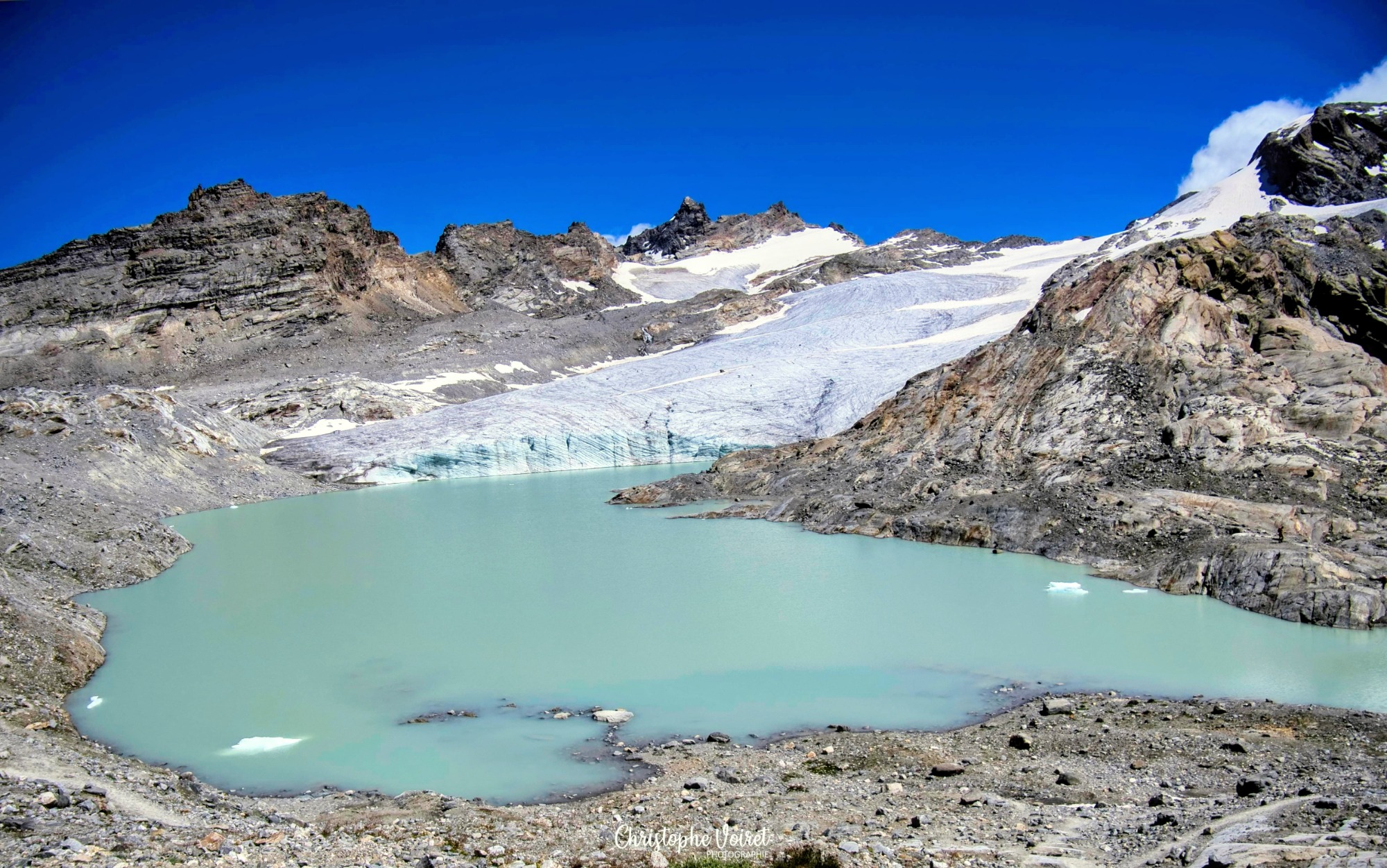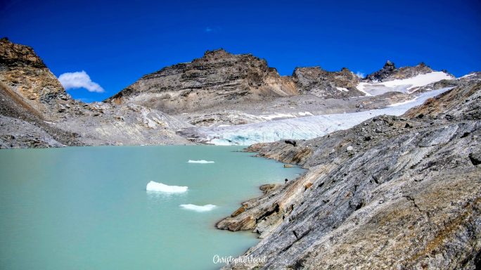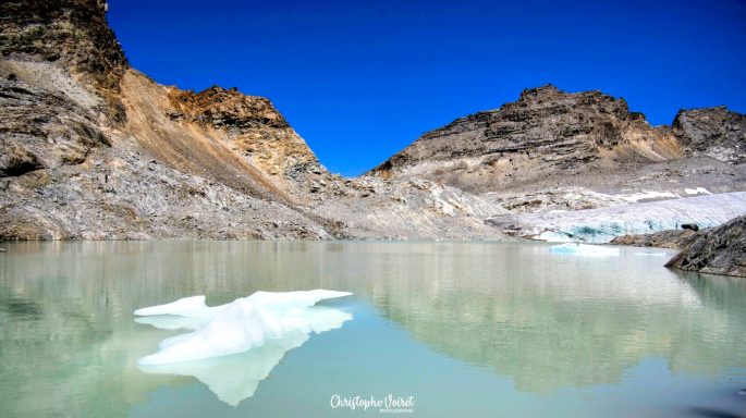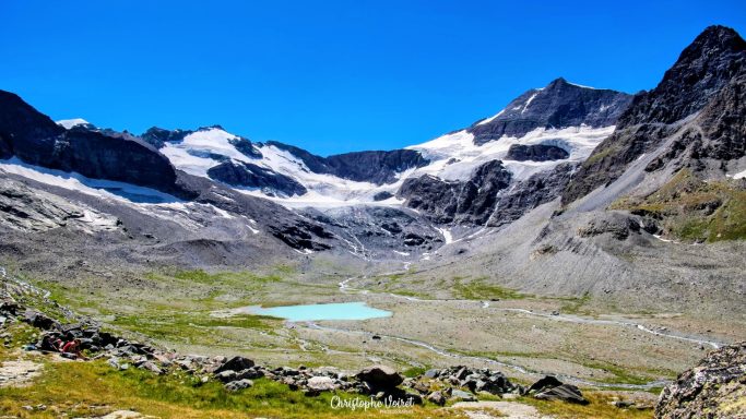 L'effort est bien récompensé lorsqu'au bout du chemin,, les eaux laiteuses du Lac Glaciaire du Grand Méan se laissent enfin découvrir.
